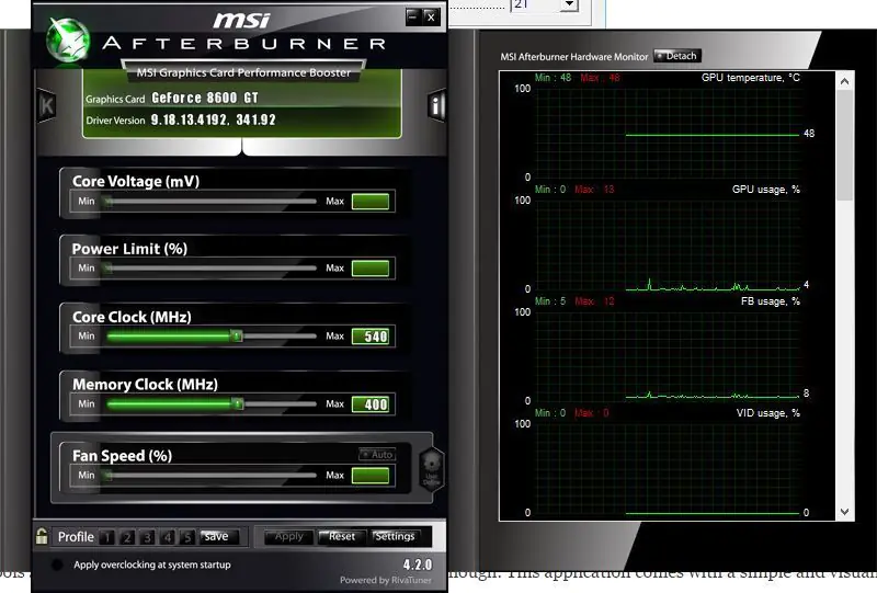 MSI Afterburner, EVGA Precision X 16’ya oldukça benzer, ancak EVGA Precision’dan farklı olarak, MSI Afterburner, hem AMD hem de NVIDIA grafik kartlarını destekliyor.