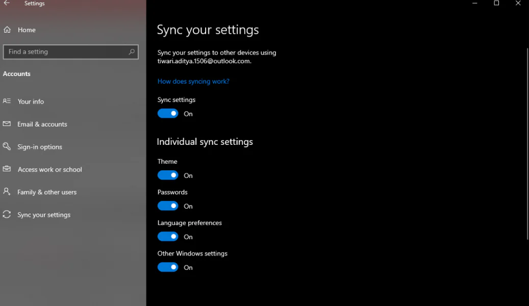 Dosya ve klasörlere ek olarak, Windows 10 ayarlarını Microsoft destekli bulut sürücünüze de koyabilirsiniz. Windows 10 Ayarları > Hesaplar > Ayarlarınızı Eşitle’ye gidin. Burada, Ayarları Senkronize Et yazan anahtarı açın. Ayrıca Temalar, Şifreler ve diğer ayarlar gibi bireysel özellikleri etkinleştirebilir/devre dışı bırakabilirsiniz.