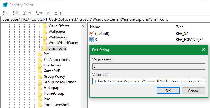 Son olarak, az önce yaptığınız 3 dizeye çift tıklayın. Değer verisi alanına, klasör simgesinin konumunu tırnak içine girin. ICO dosyanıza sağ tıklayıp ardından Yol olarak kopyala seçeneğini seçerek Shift tuşunu basılı tutarak taşıyın.