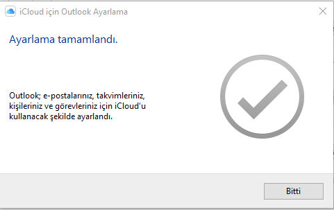 Programımız yüklendikten sonra Bitir butonuna tıklıyoruz ve iCloud, bilgisayarımıza yüklenmiş oluyor.