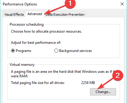 - Gelişmiş> Sanal bellek> Değiştir’e gidin