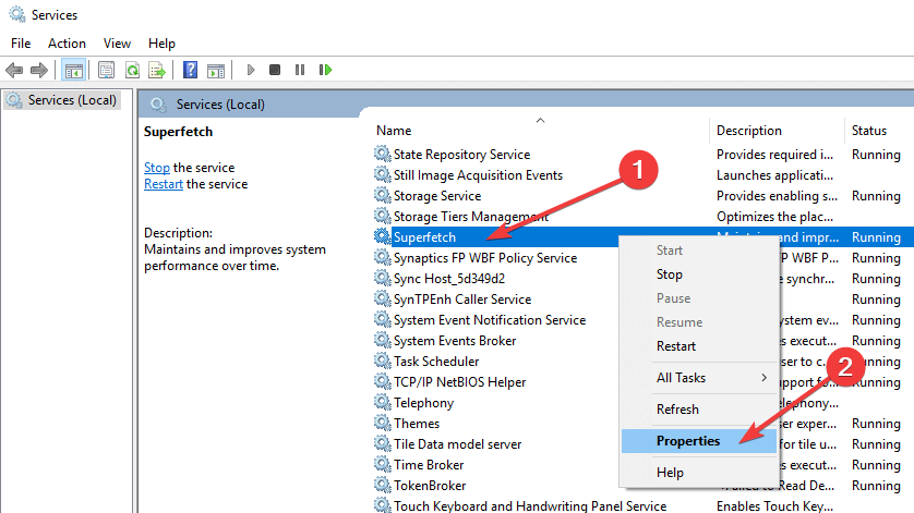 - Superfetch hizmetini bulun, sağ tıklayın ve Özellikler’e gidin