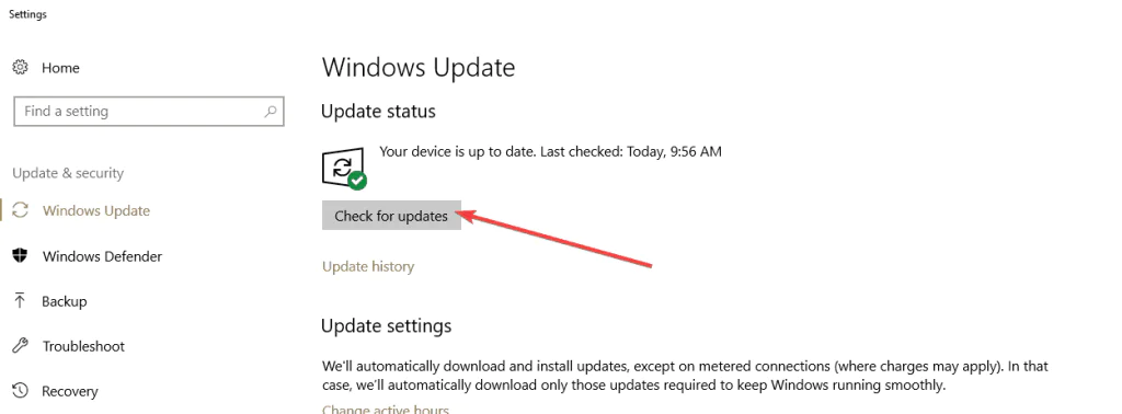 En son Windows güncellemelerini yüklemek için Ayarlar> Güncelleme ve Güvenlik> Windows Güncelleme> Güncellemeleri kontrol et bölümüne gitmeniz gerekir.