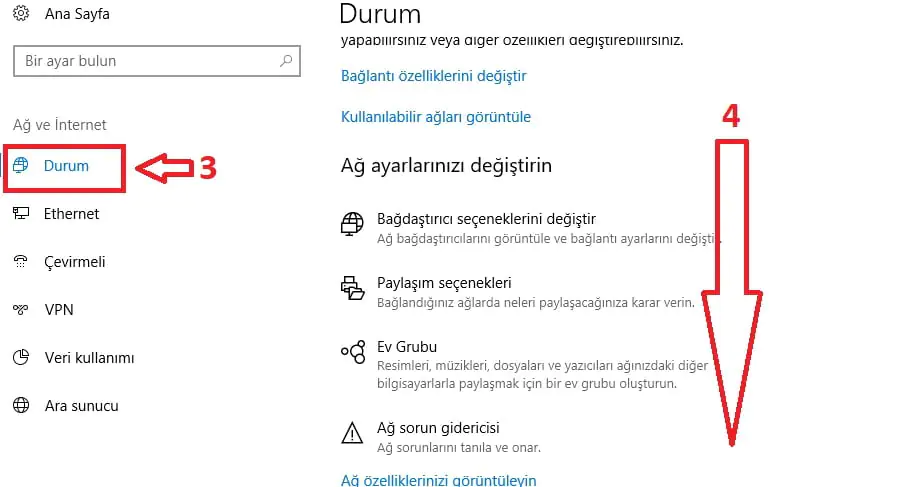 - Sonraki ekranda ise öncelikle ‘Durum’ menüsüne giriyoruz ve bu menüde en alt satırda bulunan ‘Ağ Sıfırlama’ butonuna tıklıyoruz.
