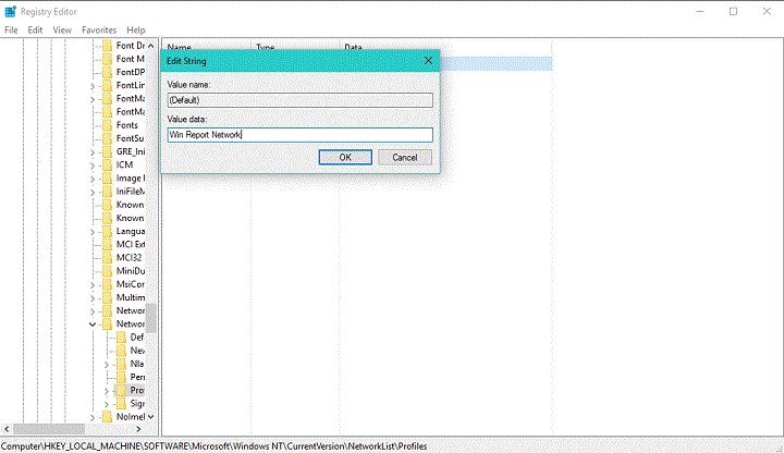 - Değer verilerini, ağ bağlantınızın istediğiniz adına değiştirin.