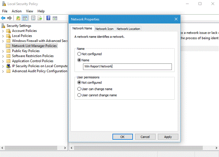 - Yerel Güvenlik İlkesi penceresinde, sol bölmedeki Ağ Listesi Yöneticisi İlkeleri’ne gidin.