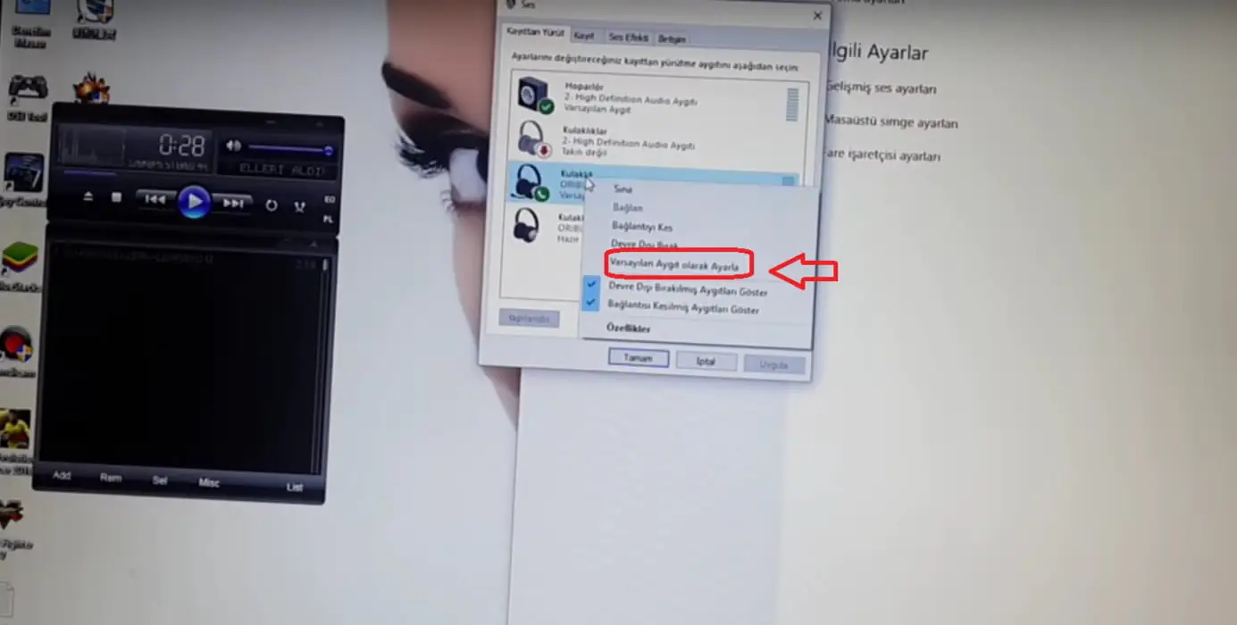 Buradaki listede “BS10 Handsfree” cihazınızın ismini göreceksiniz; cihaz ismi üzerinde sağ tıklayıp, açılan menü listesinden “Varsayılan Aygıt olarak Ayarla” menüsüne tıkladıktan sonra BS10 Handsfree” Bluetooth hoparlör kullanım için aktif ve hazır olacaktır.