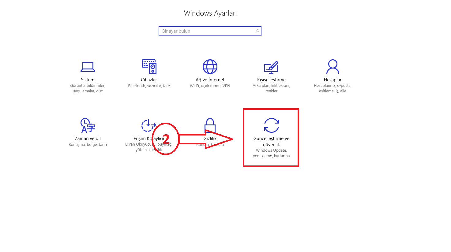 Daha sonra karşımıza gelen ekrandan ise “Güncelleşirme & Güvenlik” bölümüne giriyoruz.