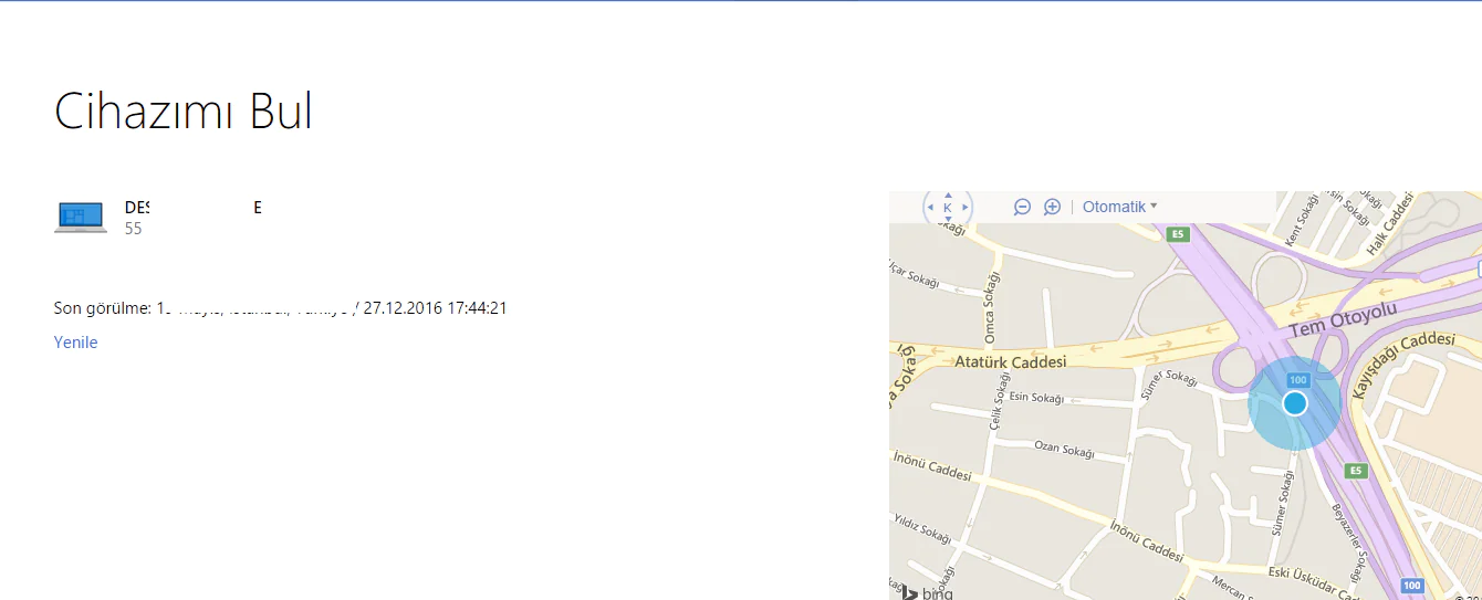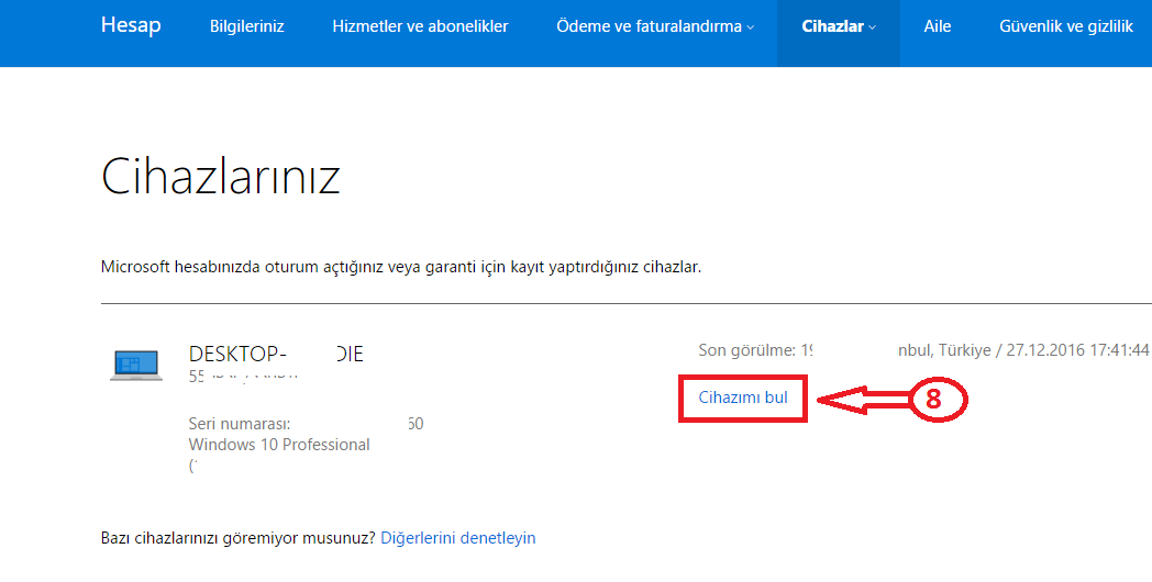 Daha sonra “Cihazmı Bul” özelliği aktif olan cihazlarınızı takip etmek isterseniz;