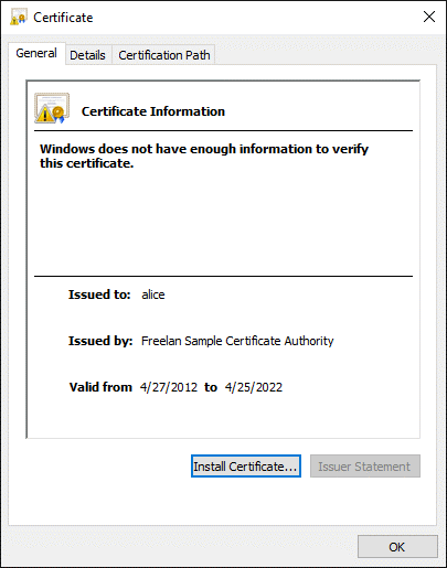 - Windows’un açması için .crt dosyanızı çift tıklatabilirsiniz. Tüm sertifikanın ayrıntılarını görebileceğiniz Sertifika penceresini açacaktır.