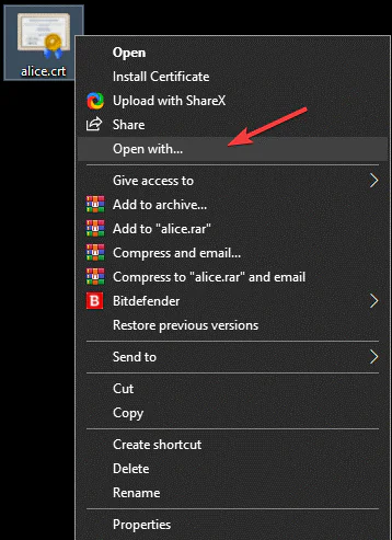 - .Crtdosyasına sağ tıklayın -> Birlikte aç’ı seçiniz.