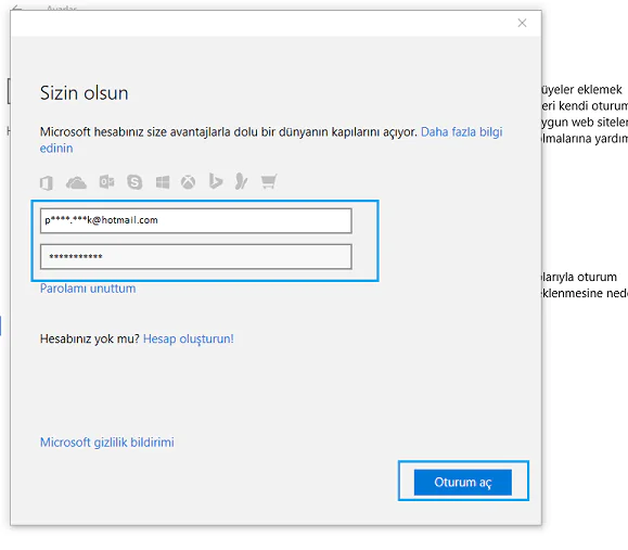 ‘Ebeveyn aile kontrol ayarları’ kurgulayabilmek için bir Microsoft hesabımız olmalı veya Gmail hesabınızı Microsoft hesabına bağlayarak işlem yapabilirisiniz.