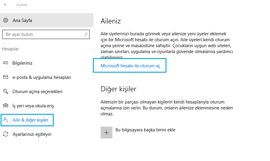 Windows 10‘da yapacağınız birkaç işlem ile aileniz, çocuklarınız ve diğer kullanıcılar için istediğiniz ayarları kurgulayabilirsiniz.