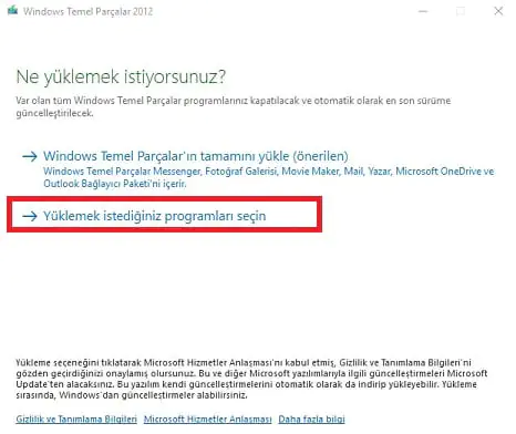 - Yükleme aracını çalıştırdığımızda, aşağıdaki gibi bir ekran gelecek. ‘Yüklemek istediğiniz programları seçin’ kısmına tıklayalım.