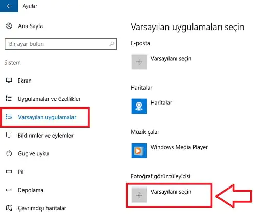 - Son olarak ‘Başlat’ → ‘Ayarlar’ → ‘Sistem’ → ‘Varsayılan Uygulamalar’ menülerine tıklayıp, açılan pencerede ‘Fotoğraf görüntüleyicisi’ kısmına tıkladıktan sonra, varsayılan olarak ‘Fotoğraf Galerisi’ni seçebilirsiniz.