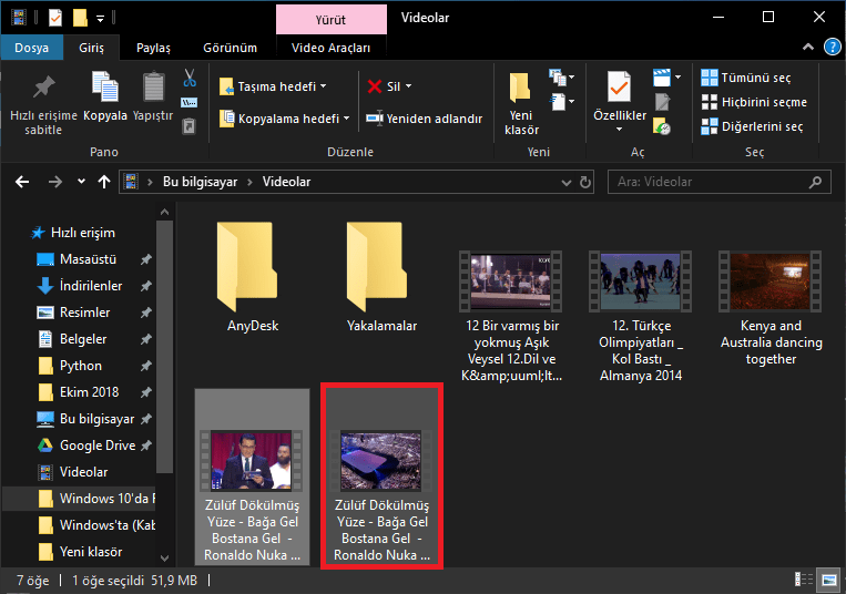 - ‘Fotoğraflar’ uygulaması, kırptığınız (kestiğiniz) videoyu, orijinal dosyanın olduğu klasöre kaydedecek. Bu klasörden, yeni video dosyasını yeniden adlandırabilirsiniz, farklı bir konuma taşıyabilirsiniz, paylaşabilirsiniz.