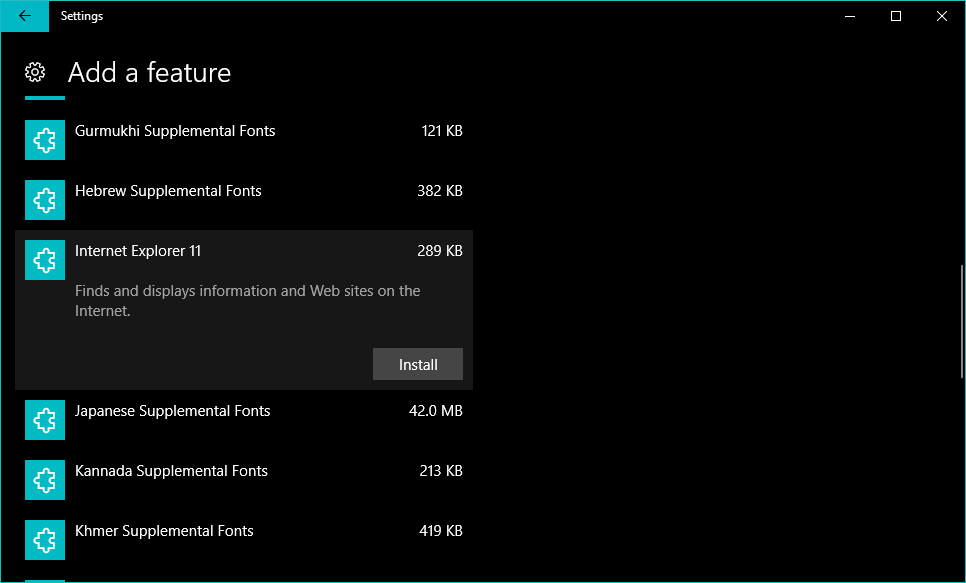 Aşağıdaki adımları izleyerek Windows 10‘da İnternet Explorer web tarayıcısını geri alabilirsiniz (yükleyebilirsiniz: