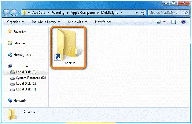 - Bu klasörlere iki kez tıklayın: “Apple” veya “Apple Computer”, ardından MobileSync ve Backup’a gidin.