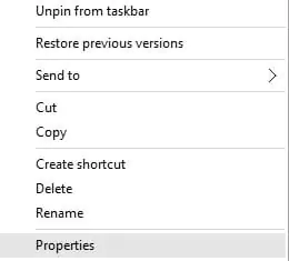 - Eksik dosyaları içeren klasörü bulun ve sağ tıklayın. Menüden Özellikler’i seçin.