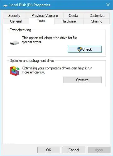 - Araçlar sekmesine giderek, Şimdi kontrol düğmesini tıklayınız. Sabit sürücünüz hatalara karşı taranacaktır. Tarama işlemi tamamlandıktan sonra gizli dosya ve klasörler geri yüklenmelidir.