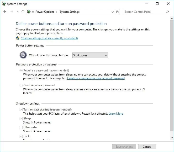 - Hızlı başlatmayı aç (önerilen) seçeneğinin işaretini kaldırın ve Değişiklikleri kaydet’i tıklayın.