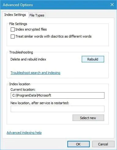Çözüm 7 – Dizin Oluşturma seçeneklerini değiştirin