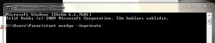 • Komut İstemi Kullanarak InPrivate Gözatma Modunda Edge’i Başlatın
