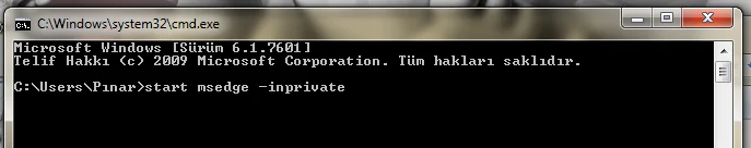 Komut İstemi Kullanarak InPrivate Gözatma Modunda Edge’i Başlatın
