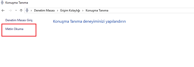 Denetim Masası AccessSpeech “Konuşma” Tanıma tıklayınız.
