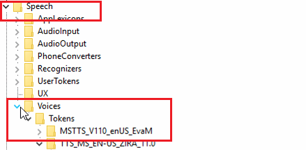 [HKEY_LOCAL_MACHINESOFTWAREMicrosoftSpeechVoicesTokensMSTTS_V110_enUS_EvaMAttributes]