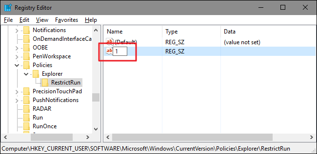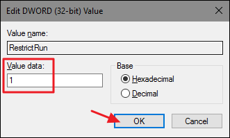 Oluşturduğunuz ‘RestrictRun’ değerine çift tıklayın ve özellikler penceresini açın. ‘Değer verisi (Value data)’ kutucuğundaki ‘0’ değerini ‘1’ yapın ve ‘Tamam (OK)’ butonuna tıklayın.