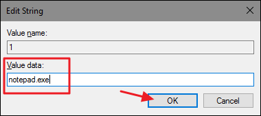 Oluşturduğunuz yeni değere çift tıklayıp özellikler penceresini açın ve engellemek istediğiniz uygulamanın (çalıştırılabilir dosya) ismini (örn.: notepad.exe), ‘Değer verisi (Value data)’ kutucuğuna yazdıktan sonra ‘Tamam (OK)’ butonuna tıklayın.