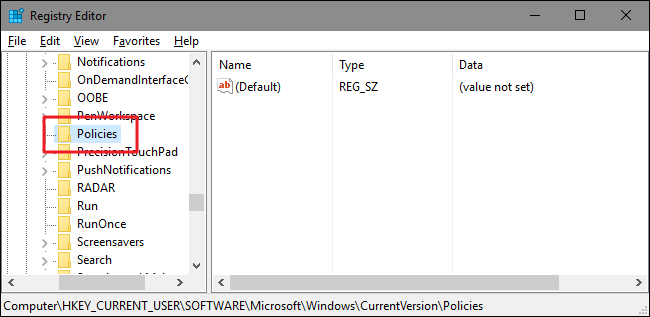 HKEY_CURRENT_USERSOFTWAREMicrosoftWindowsCurrentVersionPolicies
