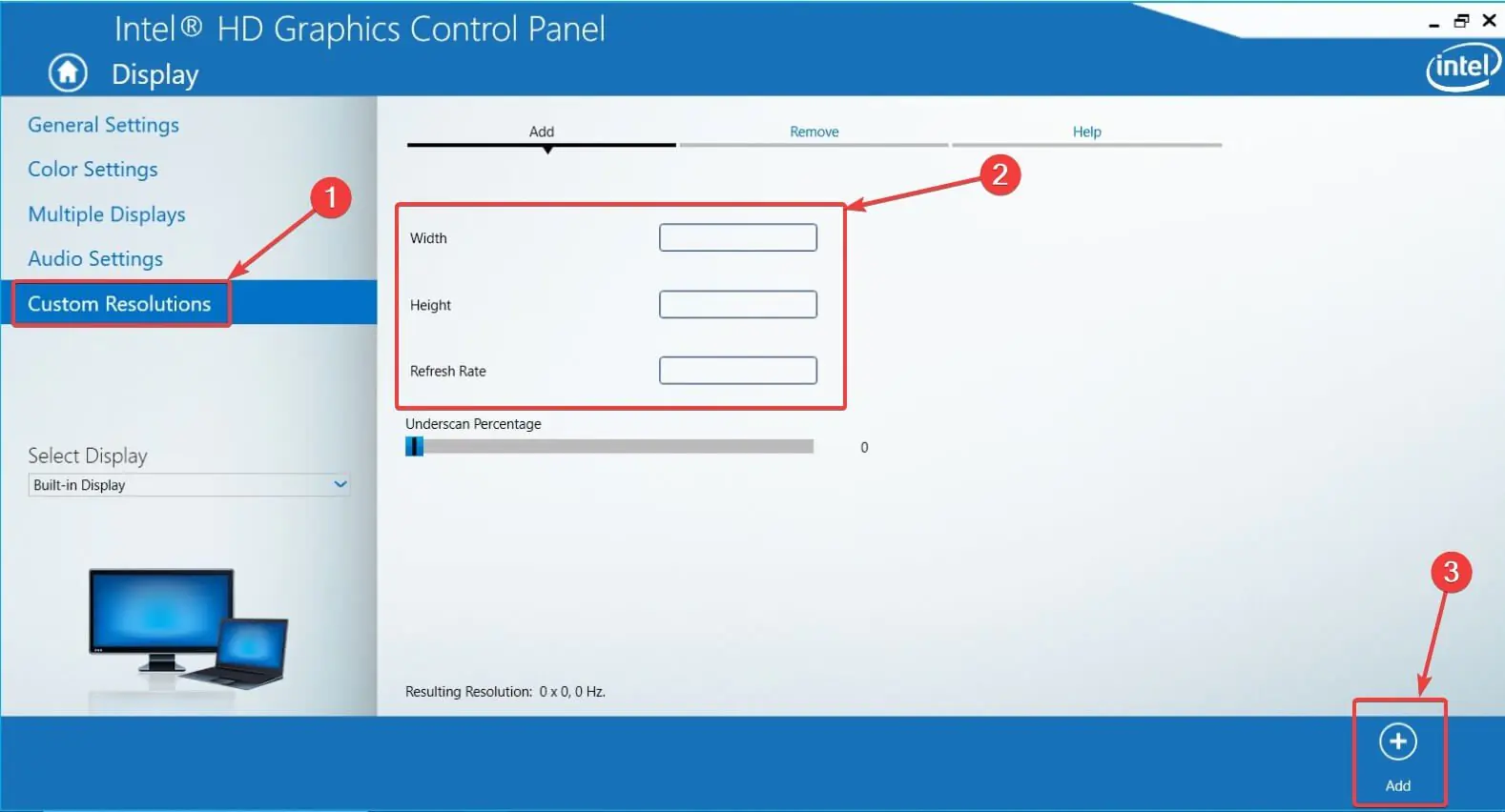 Intel Graphics sürücüsü için Özel Çözünürlük / Modları kullanın.