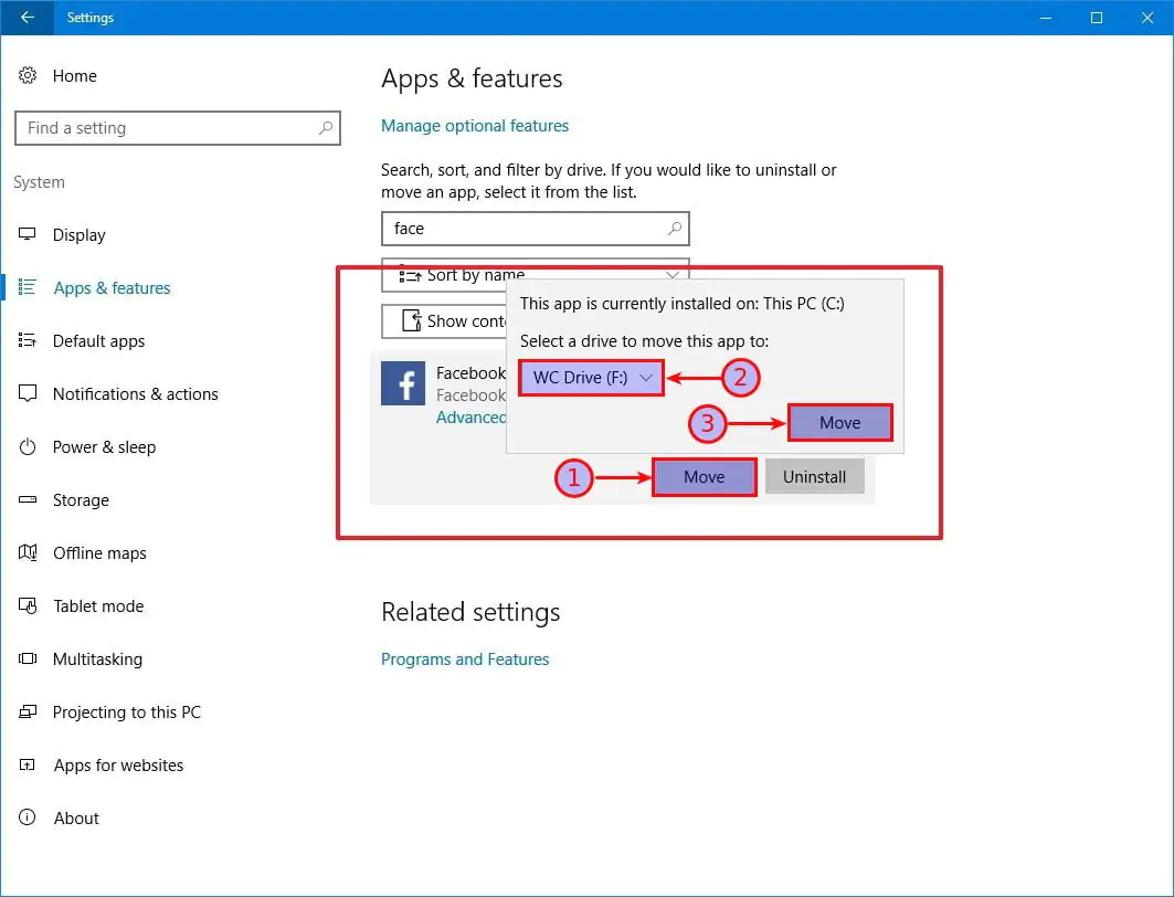 - Aşağı doğru açılan menüden, uygulamanın taşınacağı hedef sürücüyü seçin.