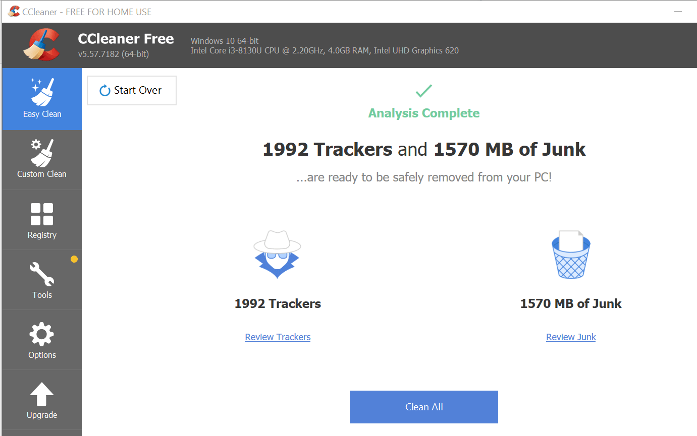 - CCleaner, sistemi hem izleyici hem de Önemsiz dosyalar için tarar.