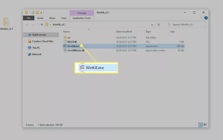 2-Klasörden WinKill.exe’yi çalıştırın. Onaylamanız istenirse “Çalıştır’ı” seçin.