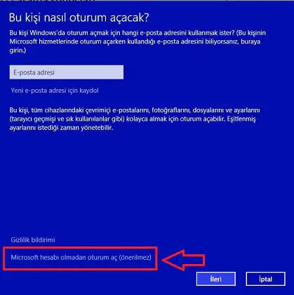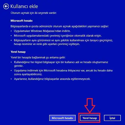 • Bir sonraki adımda ise yine tahmin edeceğiniz gibi ‘Yerel hesap’ butonuna tıklayalım.