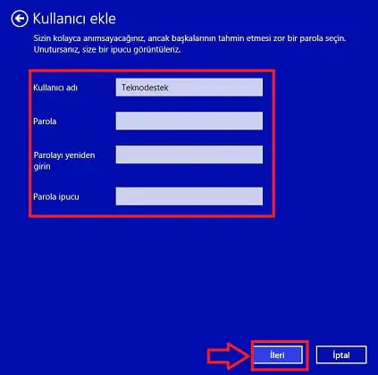 • Sonraki adımda ise ‘kullanıcı adımızı’ ve ‘parolamızı’ belirleyelim.