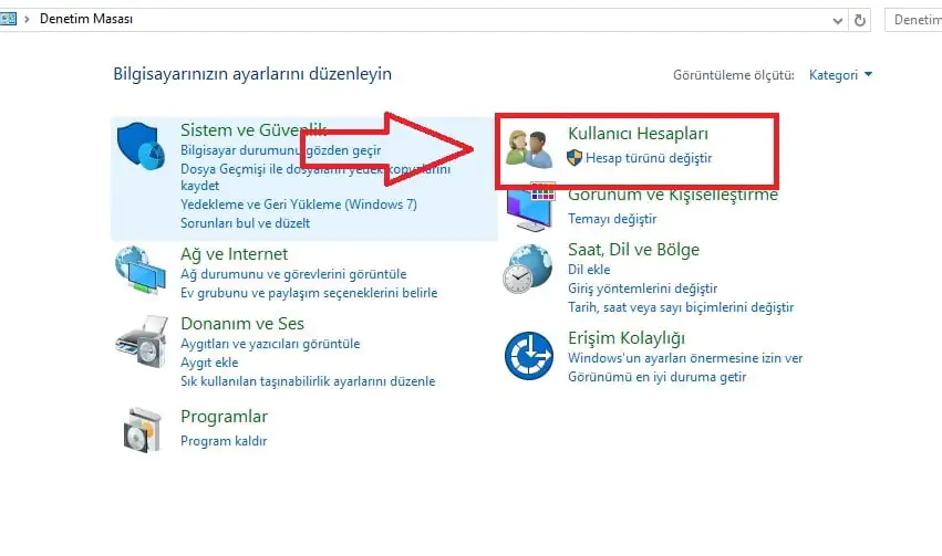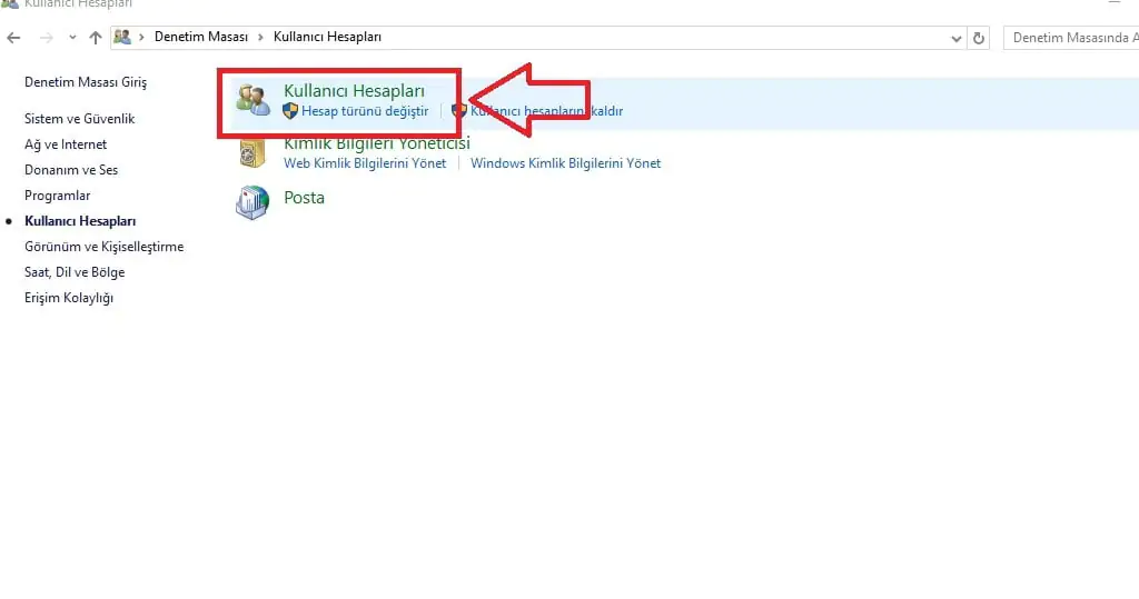 - Açılan pencerede yer alan, ‘Kullanıcı Hesapları’ menüsüne tıklıyoruz.