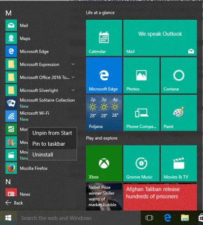 Sadece Başlat Menüsünü açın, silmek istediğiniz uygulamaya sağ tıklayın ve bu kadar basit bir şekilde Kaldır’ı seçin.