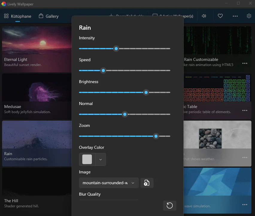 Adımları tamamladığınızda, masaüstünüzde canlı duvar kağıtları ayarlamak için uygulamayı kullanabilirsiniz.