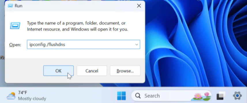 Çalıştır’ı kullanarak DNS’yi temizlemek için: