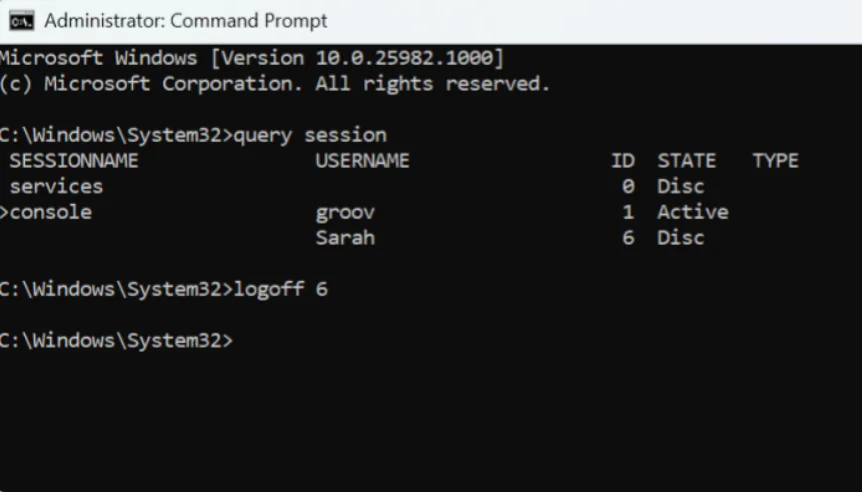 Komut İstemi Aracılığıyla Windows 11’deki Diğer Kullanıcıların Oturumunu Kapatın
