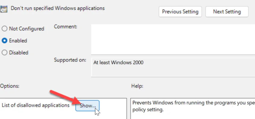 PowerShell’i daha sonra etkinleştirmeniz gerekirse Grup İlkesi’ne gidin ve Belirtilen Windows uygulamalarını çalıştırma ilkesini Yapılandırılmadı veya Devre Dışı Bırak olarak ayarlayın.