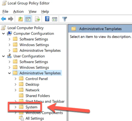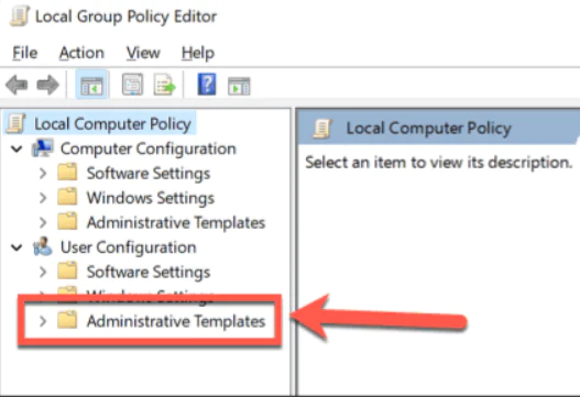 - Kullanıcı Yapılandırması altında Yönetim Şablonları’na çift tıklayın.