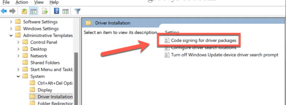 - Ayar altında Sürücü Paketleri için Kod İmzalama’ya çift tıklayın.