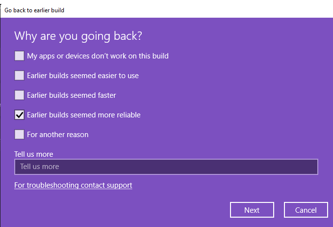 Ardından, Microsoft, mevcut yapı ve sistem parolanızda kalmayı yeniden değerlendirerek verileriniz hakkında sizi uyaracaktır. Bu seçenekler arasında gezinin ve geri alma işlemine başlayın.