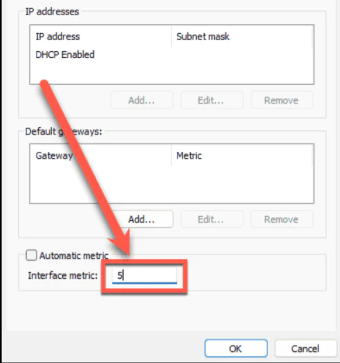 Set-NetIPInterface -interfaceIndex “XX” -InterfaceMetric “YY”