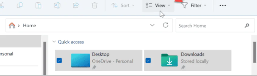 - Dosya Gezgini açıkken üst araç çubuğundaki Görünüm düğmesini tıklayın.